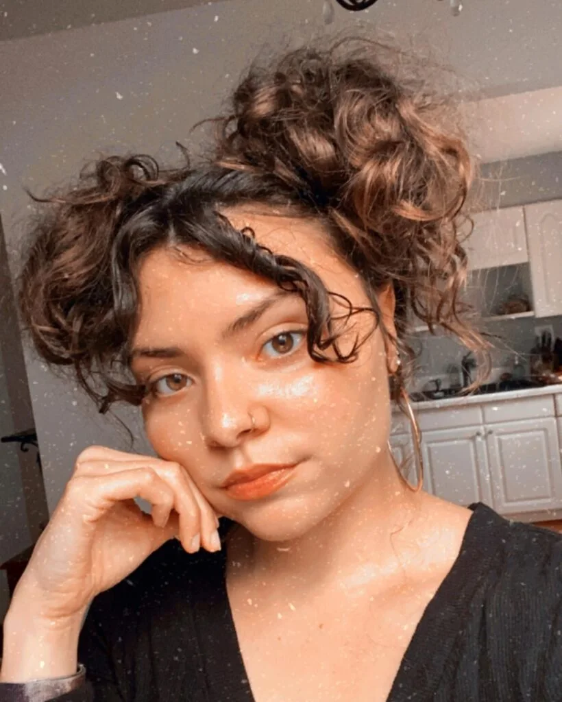 From sleek low buns to high, fluffy puffs, curly buns can be tailored to match your vibe. Messy buns add a carefree charm, while braided buns or accessorized styles bring elegance. Whether you’re heading to school, work, or a night out, curly bun hairstyles are versatile and easy to style. Let’s go through some curly bun inspo that will elevate your everyday look.