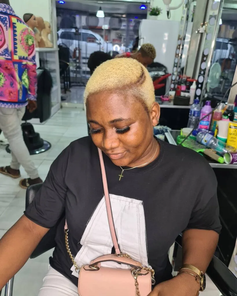 Blonde Buzz Cut with Curved Design