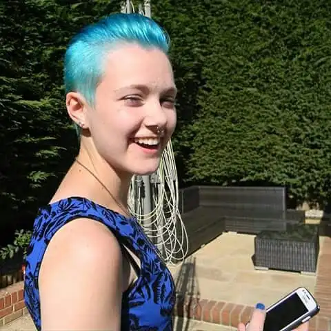 Bright Aqua Slicked-Back Pixie